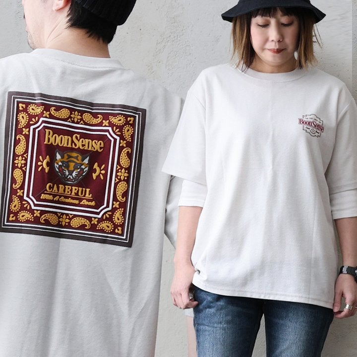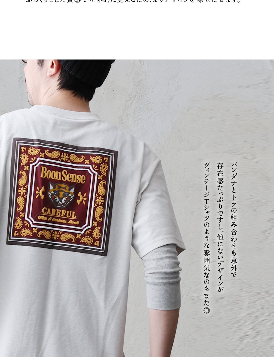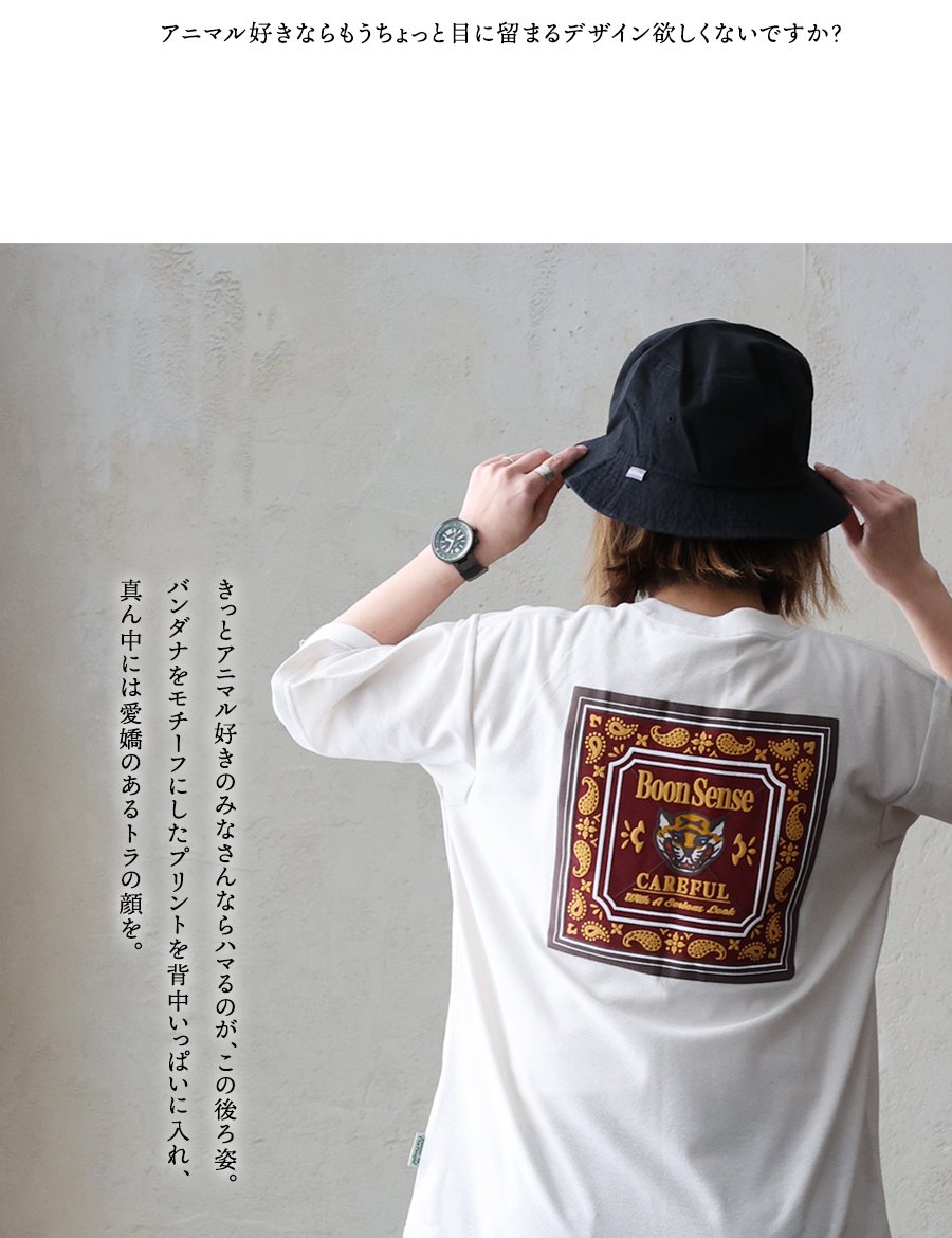 意外だけど、¨あり¨な背中の組み合わせ。 Tシャツ 半袖 メンズ レディース アニマル トラ バンダナ プリント バックプリント ワンポイント コットン ポリエステル 涼しい 通気性 大きいサイズ カジュアル パティ