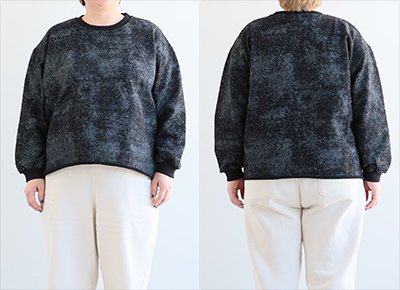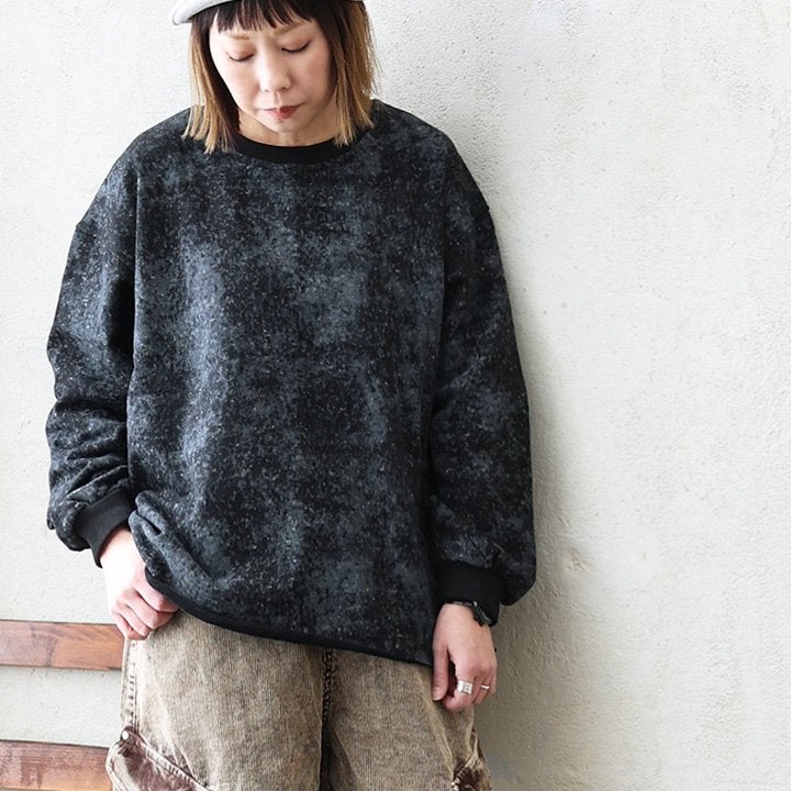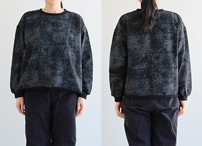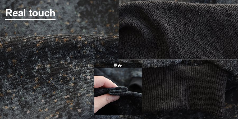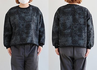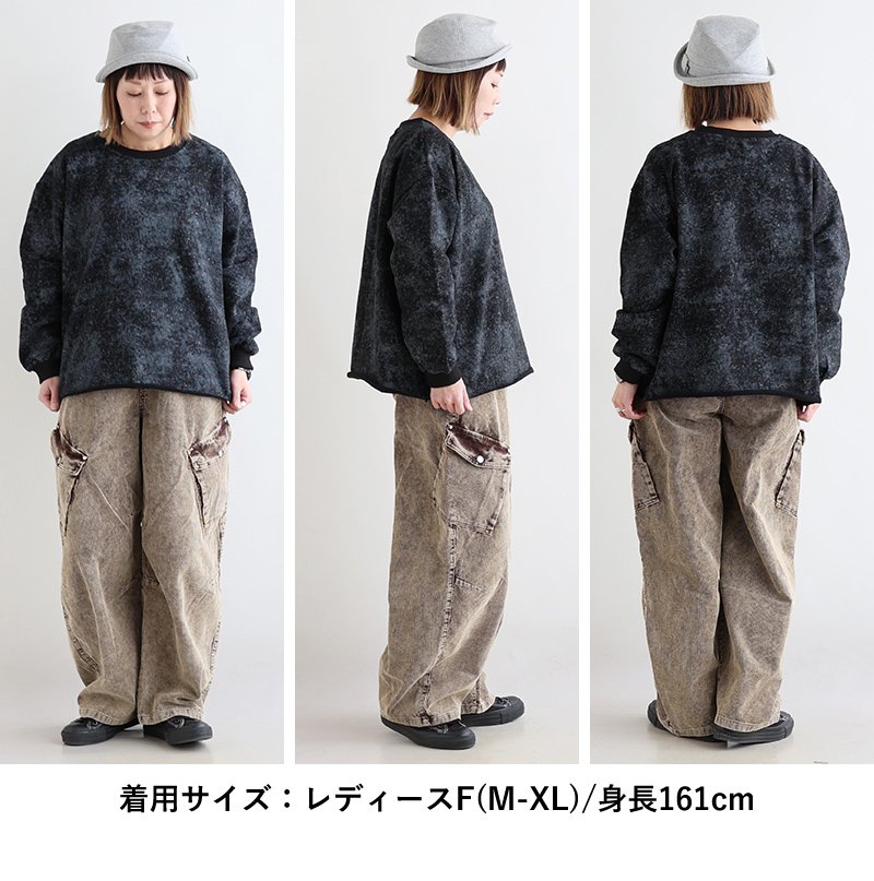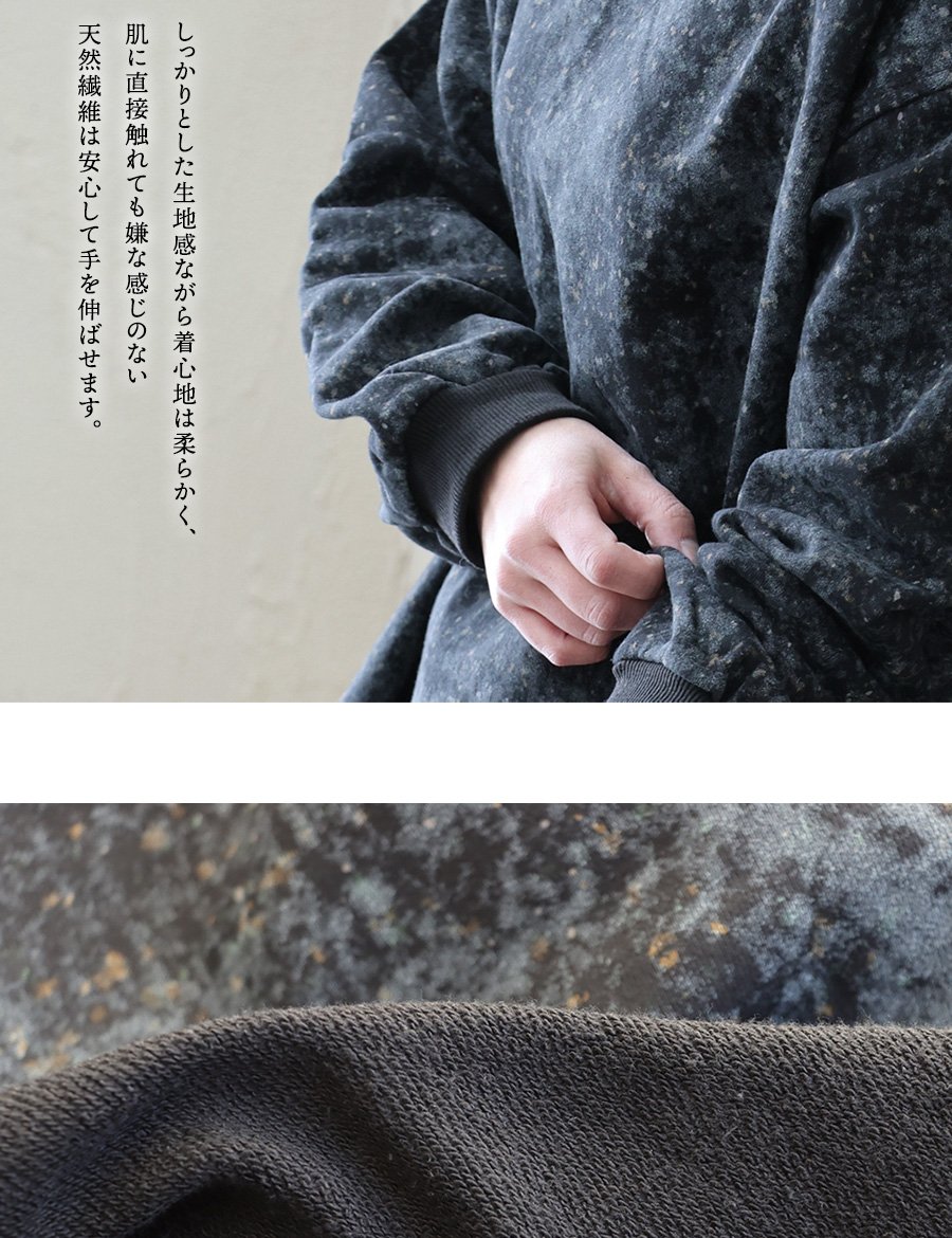 6. スウェット 長袖 レディース クルーネック 裏毛 綿100 コットン プリント ピグメント風 褪せ色 袖リブ 大きいサイズ 体型カバー カジュアル 春 パティ COLORK カラック