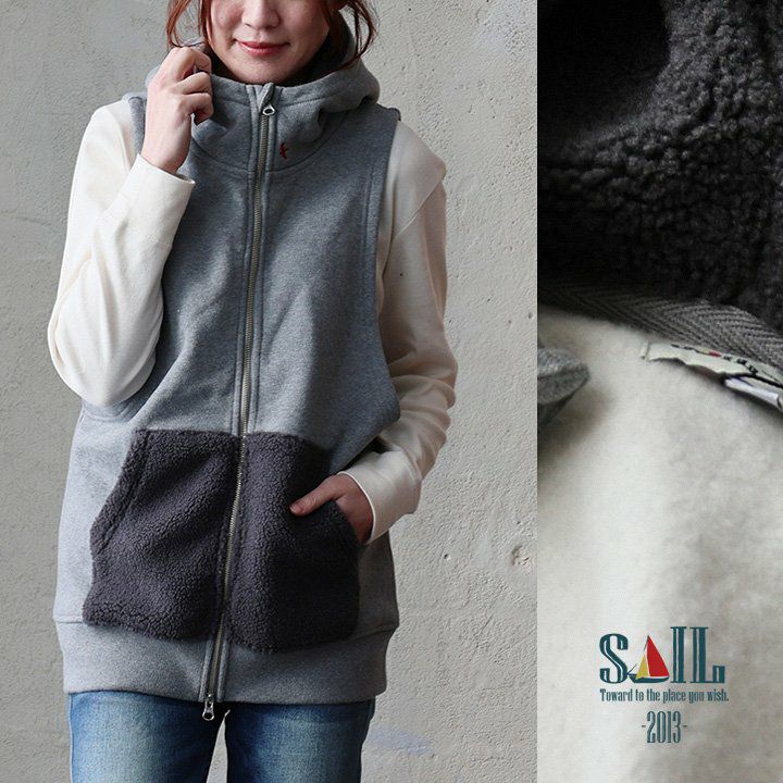3. 【アウトレット】【撮影使用分】 ベスト レディース 裏ボア 切り替え 裏起毛 スウェット フード付き ジップアップ カジュアル パティ SAIL セイル