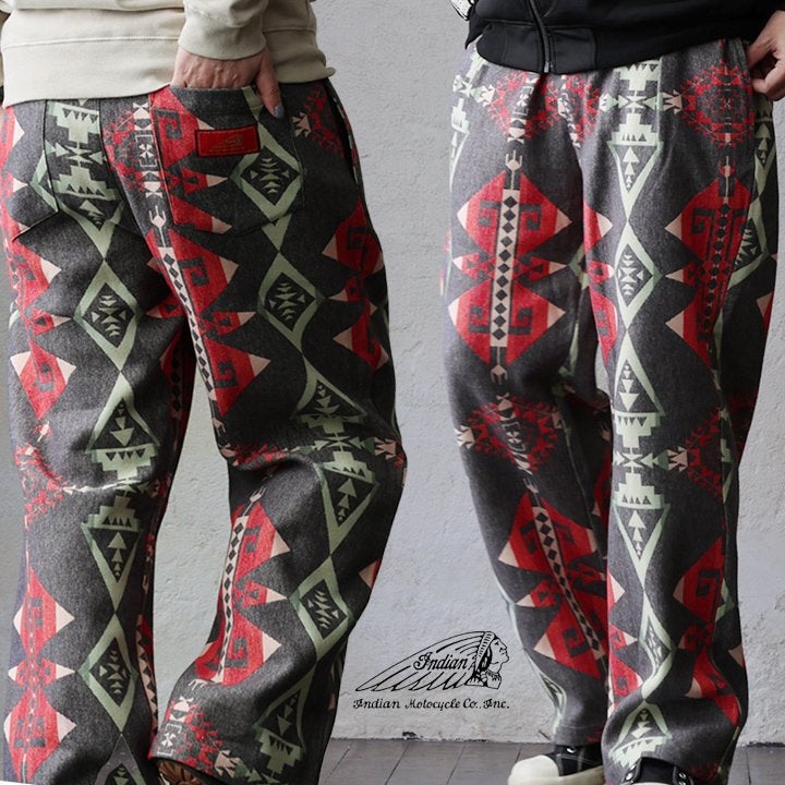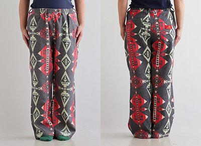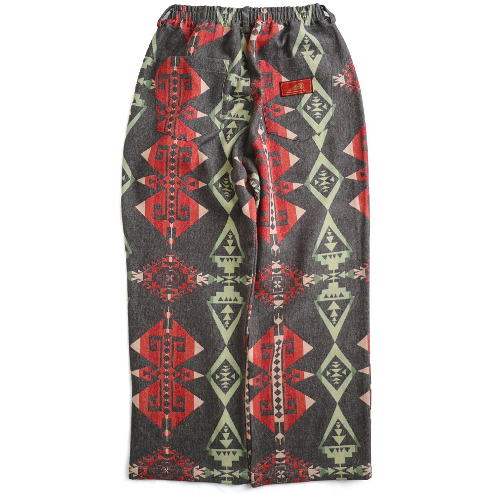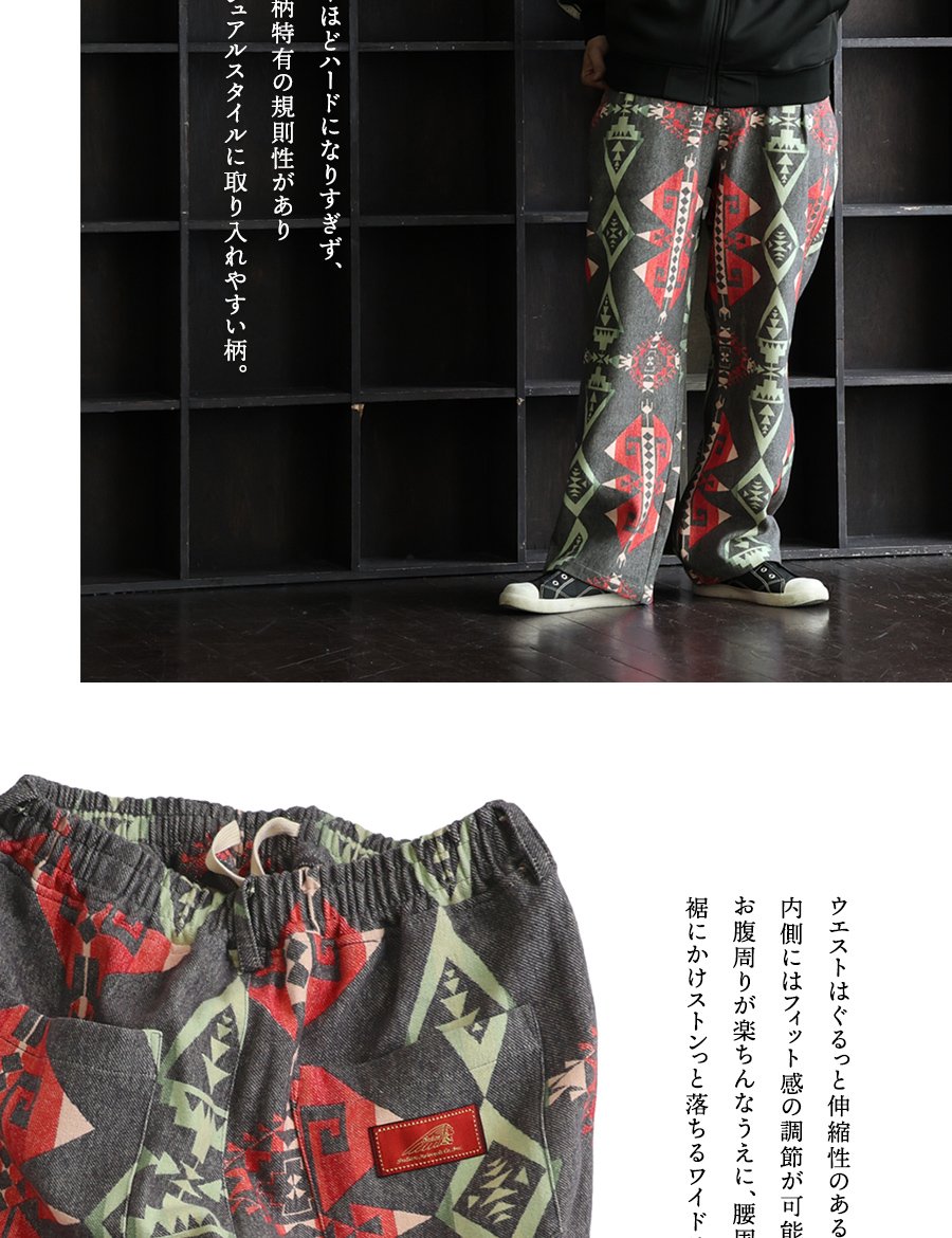 無地トップスを引き立てる、温かみと力強さ。 パンツ ワイドパンツ ストレート メンズ レディース 総柄 ナバホ柄 ネイティブ 綿100 コットン ツイル 微起毛 ウエストゴム ゆったり 大きいサイズ 体型カバー カジュアル パティ