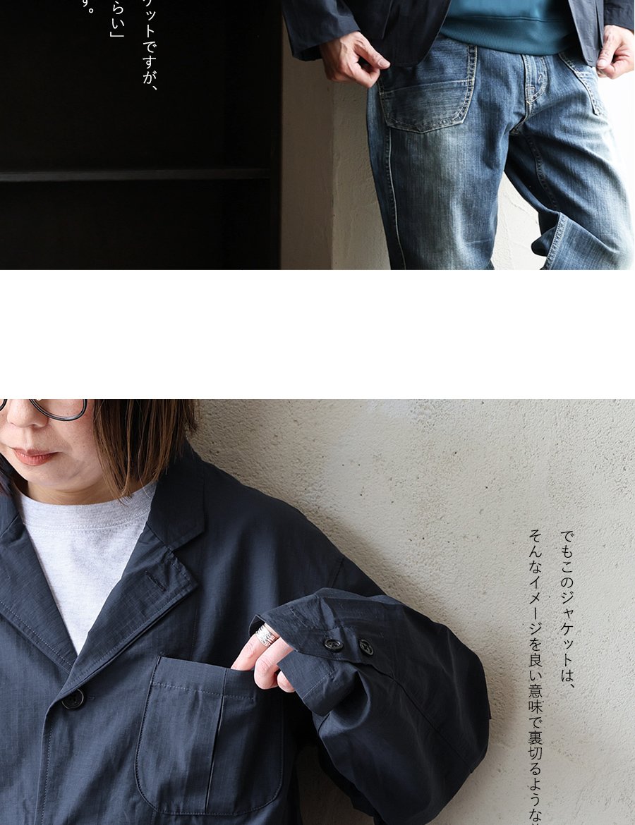 「ジャケットは気を使うもの」という常識を覆す、軽くてタフなテーラード。 BIG MIKE ビッグマイク テーラードジャケット 長袖 メンズ レディース コットン ナイロン リップストップ 軽い 重ね着 大きいサイズ カジュアル オフィスカジュアル 春 夏 秋 パティ