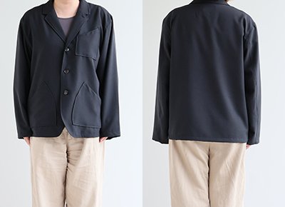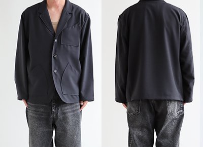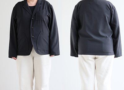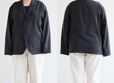【モデルコメント】中は、カットソー2枚は合わせられそうです。すっきりと着れるサイジングでした。 【客観的コメント】お尻がほぼ隠れる着丈の長さです。目立ったフィット感はなかったですし、問題はありませんね。