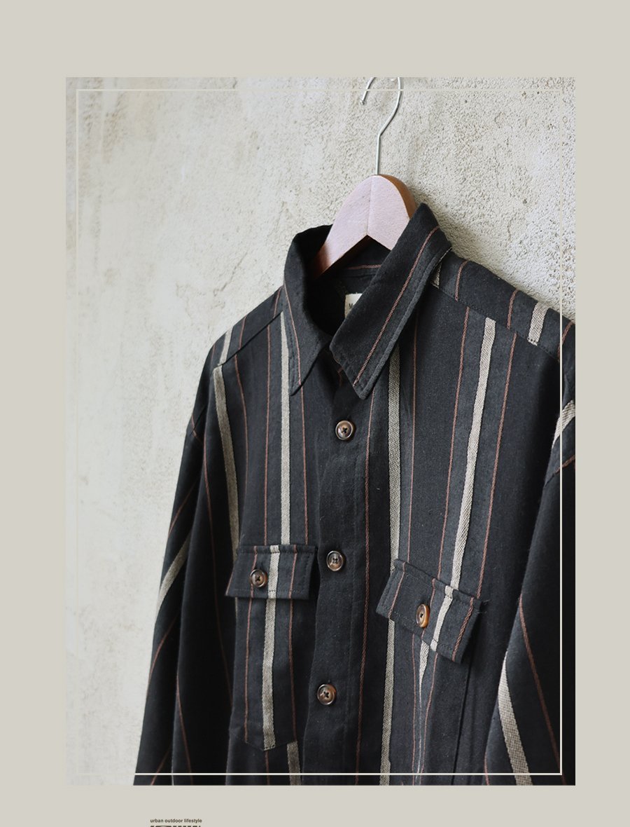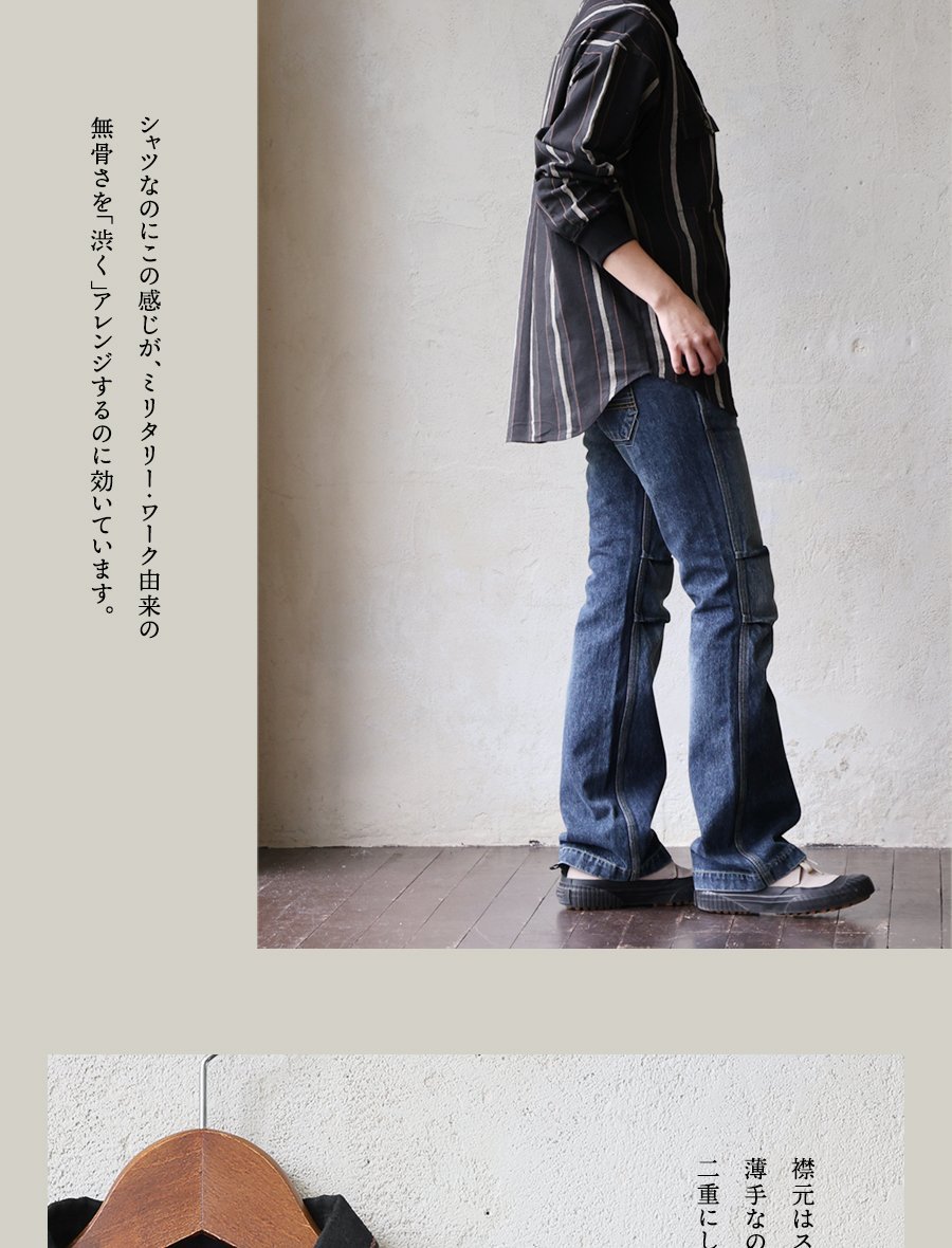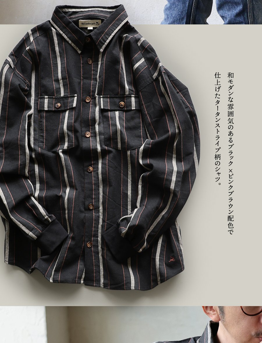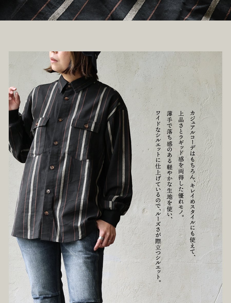 「余裕のある大人の装い。袖をまくって、自分らしく着こなす。」 【訳あり】シャツ 袖リブ メンズ レディース 長袖 コットン 綿100% 薄手 着痩せ ワイド 落ち感 ストライプ カッコイイ ポケット レギュラーカラー ゆったり ボックスシルエット 秋 大人 カジュアル パティ Mr.Lumberjack ミスターランバージャック
