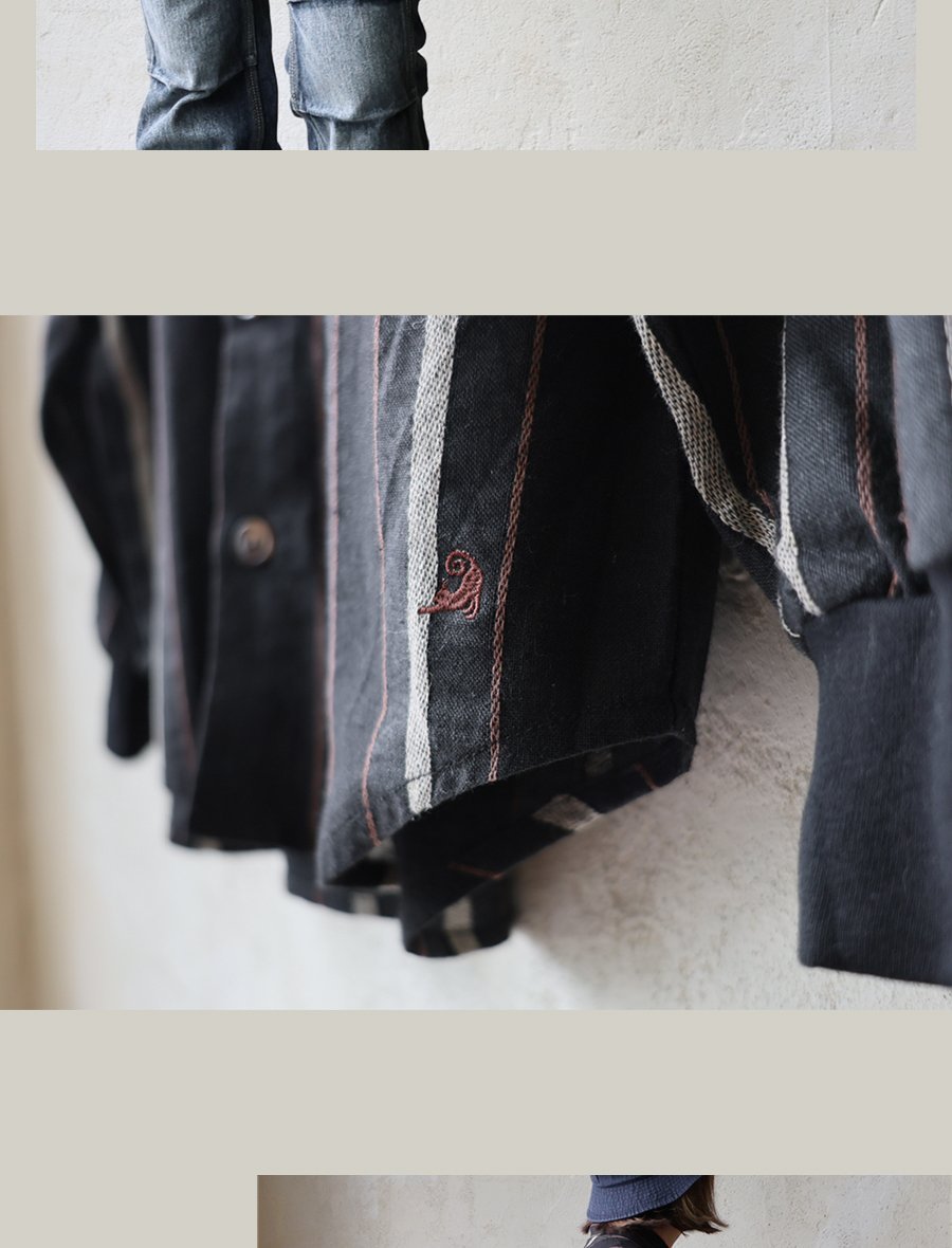 【モデルコメント】中は、Teeやカットソーも合わせやすそうです。程好くゆとりがあって、ボクは着るならこのサイズが良いですね。 【客観的コメント】まもるくらいの体型なら、Lサイズで丁度良い感じのサイジングだね。