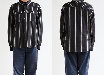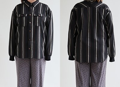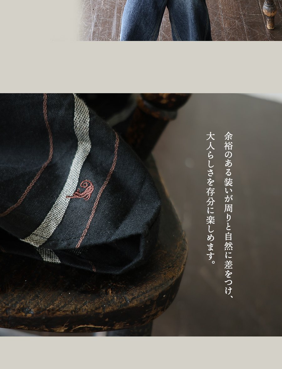 本体:薄手でややハリ感のあるコットン地。ストライプ織り柄の凹凸が若干あります。サラッとした触り心地で軽く、伸縮性はなく、光にかざすと若干の透け感があります。