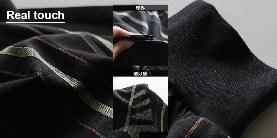 リブ部分:程よく厚みのあるリブ地。サラッとした触り心地で柔らかく、横方向に伸縮性があります。