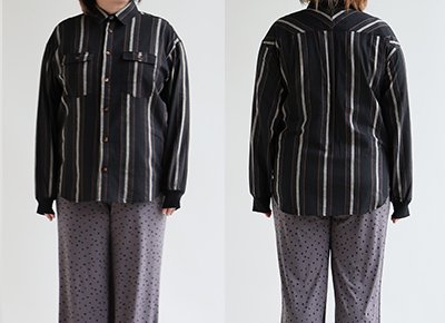 【モデルコメント】中は、薄手のTeeやカットソーは合わせても問題はなさそうです。ジャストサイズって感じでした。 【客観的コメント】ごったくよりガッチリした人だと、フィット感は出ちゃいそうなサイジングだったね。
