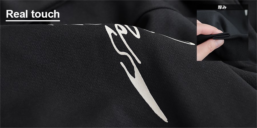 【※】プリント部分にはひび割れやムラの凹凸、ステッチ等の跡があります。着用を繰り返すことでプリントが剥がれたり薄くなったりと変化します。