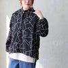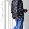 線で魅せる、アートなブラウス。 ブラウス 長袖 レディース バンドカラー 総柄 チェーンステッチ 配色 袖ゴム 綿100 コットン ポリエステル ゆったり 大きいサイズ 体型カバー カジュアル パティ