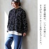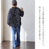 6. ブラウス 長袖 レディース バンドカラー 総柄 チェーンステッチ 配色 袖ゴム 綿100 コットン ポリエステル ゆったり 大きいサイズ 体型カバー カジュアル パティ