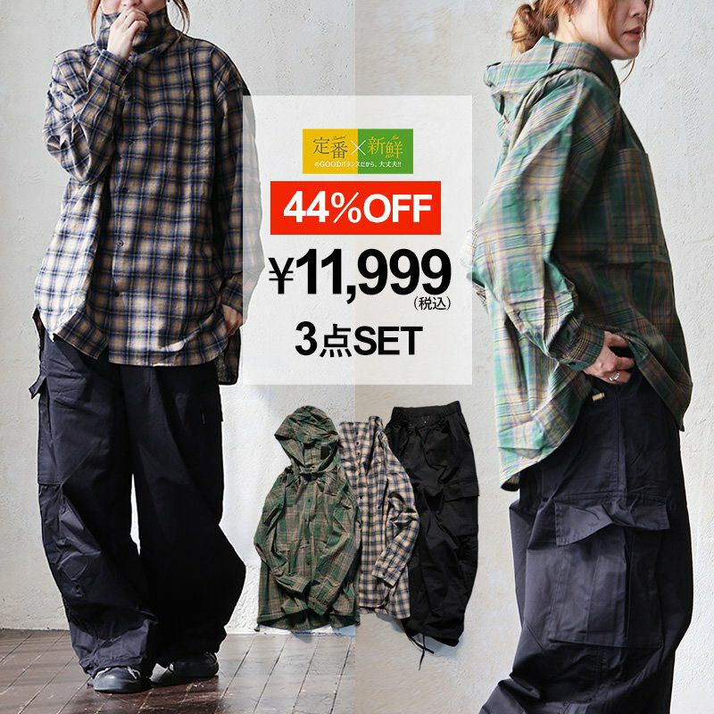 【カラー】グリーンチェック 【サイズ】レディースF(M-XL) ※全セット共通サイズ