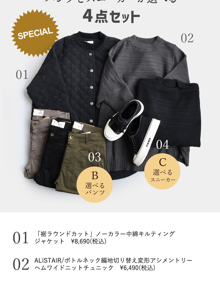 【選べるサイズ】商品ページへ移動し、お好きなサイズを1つ選び、コーデセットと同じカゴでお買い上げください。