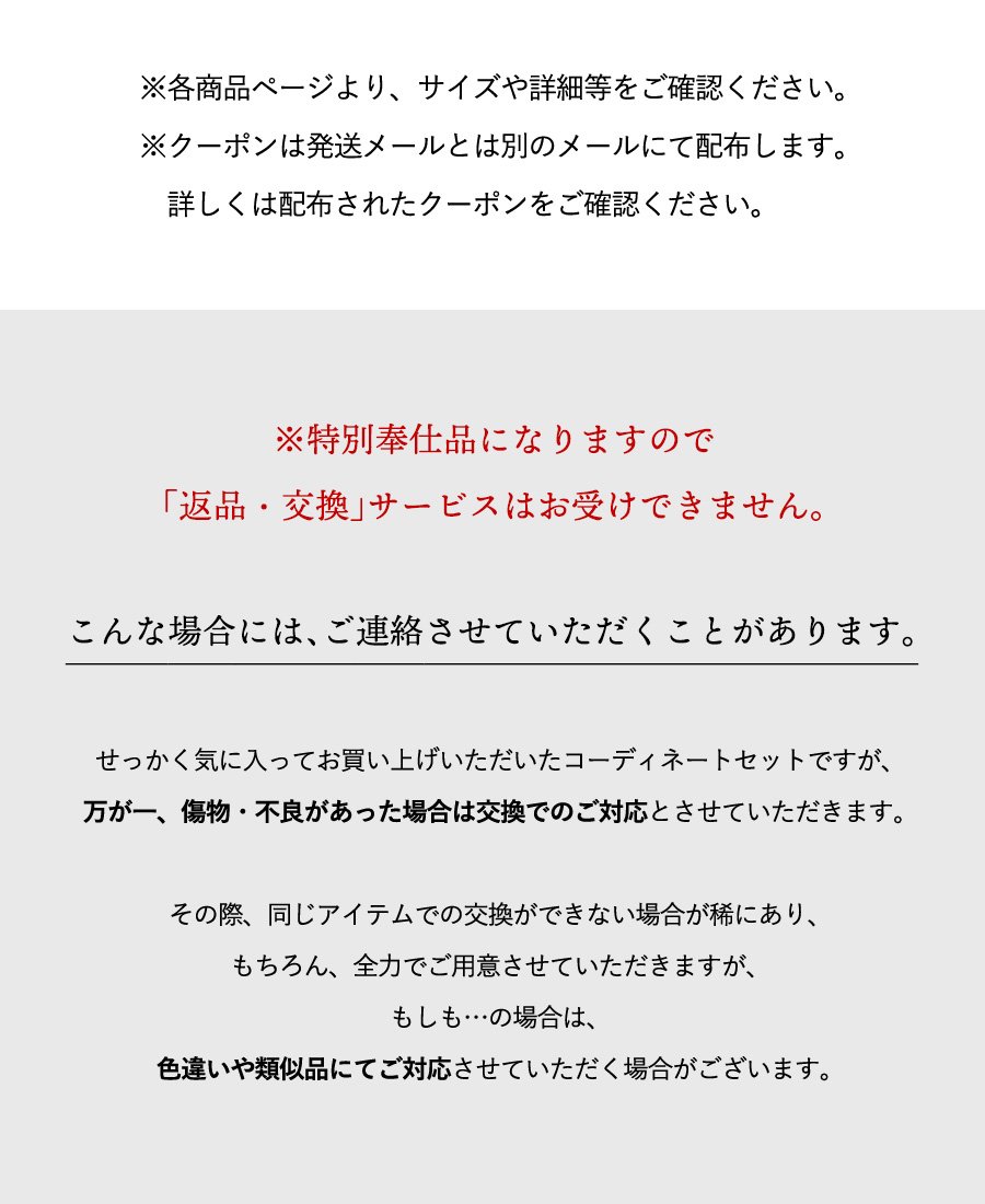 商品の品質につきましては、万全を期しておりますが、万一不良・破損などがございましたら、商品到着後7日以内にお知らせください。返品・交換につきましては、1週間以内、未開封・未使用に限り可能です。