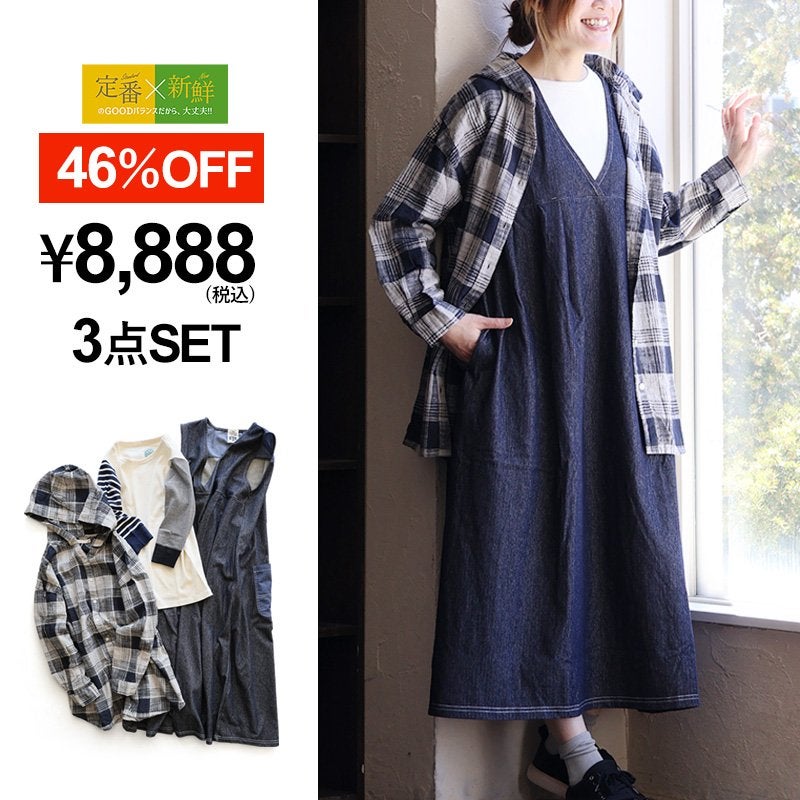 【カラー】ネイビーデニム 【サイズ】レディースF(M-L) ※全セット共通サイズ