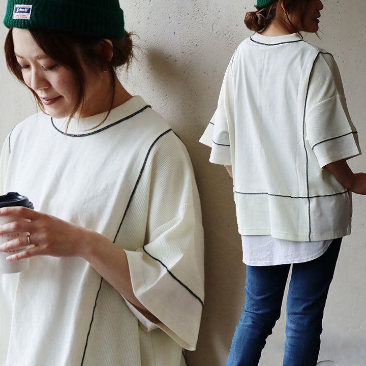他の画像を見る このヴィンテージな「ひと癖」に惹かれる。 Tシャツ 5分袖 クルーネック レディース 異素材切り替え 配色 ステッチ コットン天竺 ワッフル 伸縮性 ゆったり 体型カバー 大きいサイズ 着痩せ すっきり カジュアル 夏 夏服 パティ 2~3日でお届け 販売価格 ¥ 4,950 税込 在庫切れ カートに入れる お気に入りに登録する