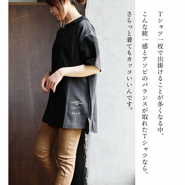 他の画像を見る 統一感ある大人の異素材アソビ。 着痩せ すっきり tシャツ ワイド ロング丈 5分袖 夏 レディース 無地 異素材 切り替え 綿100 ダブルガーゼ 二の腕 お尻 体型カバー カジュアル パティ KAKELA&TRANQUIL カケラ&トランクイル 2~3日でお届け 販売価格 ¥ 7,150 税込 在庫切れ カートに入れる お気に入りに登録する