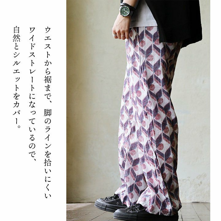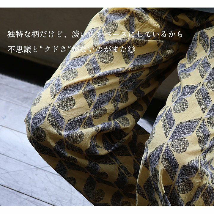 他の画像を見る ミステリアスで、不思議と目を奪われる「アート」な柄。 ワイドパンツ ストレート レディース 総柄 派手 綿100 コットン 薄手 涼しい 軽い 裏地付き ウエストゴム ゆったり 体型カバー カジュアル 春 夏 秋 パティ GENTIL ジャンティ 2~3日でお届け 販売価格 ¥ 6,490 税込 在庫切れ カートに入れる お気に入りに登録する