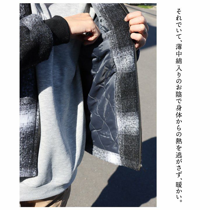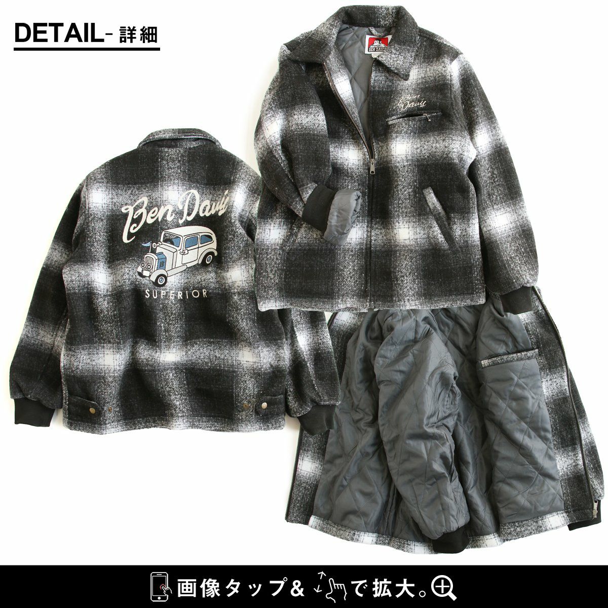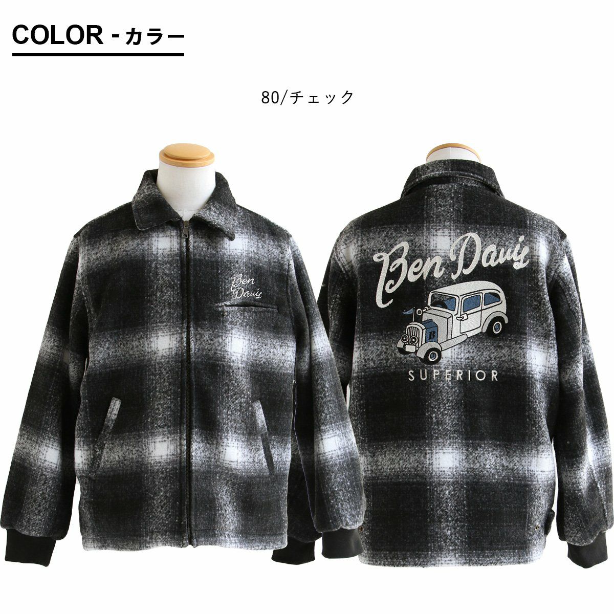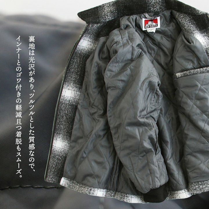 他の画像を見る ブラックチェックに映える「背中の刺繍」。 BEN DAVIS ベンデイビス ジャケット 長袖 メンズ レディース オンブレチェック ブラック メルトン風 ポリエステル 薄中綿 暖かい ゆったり 大きいサイズ カジュアル 秋 冬 パティ 2~3日でお届け 販売価格 ¥ 18,480 税込 在庫切れ カートに入れる お気に入りに登録する