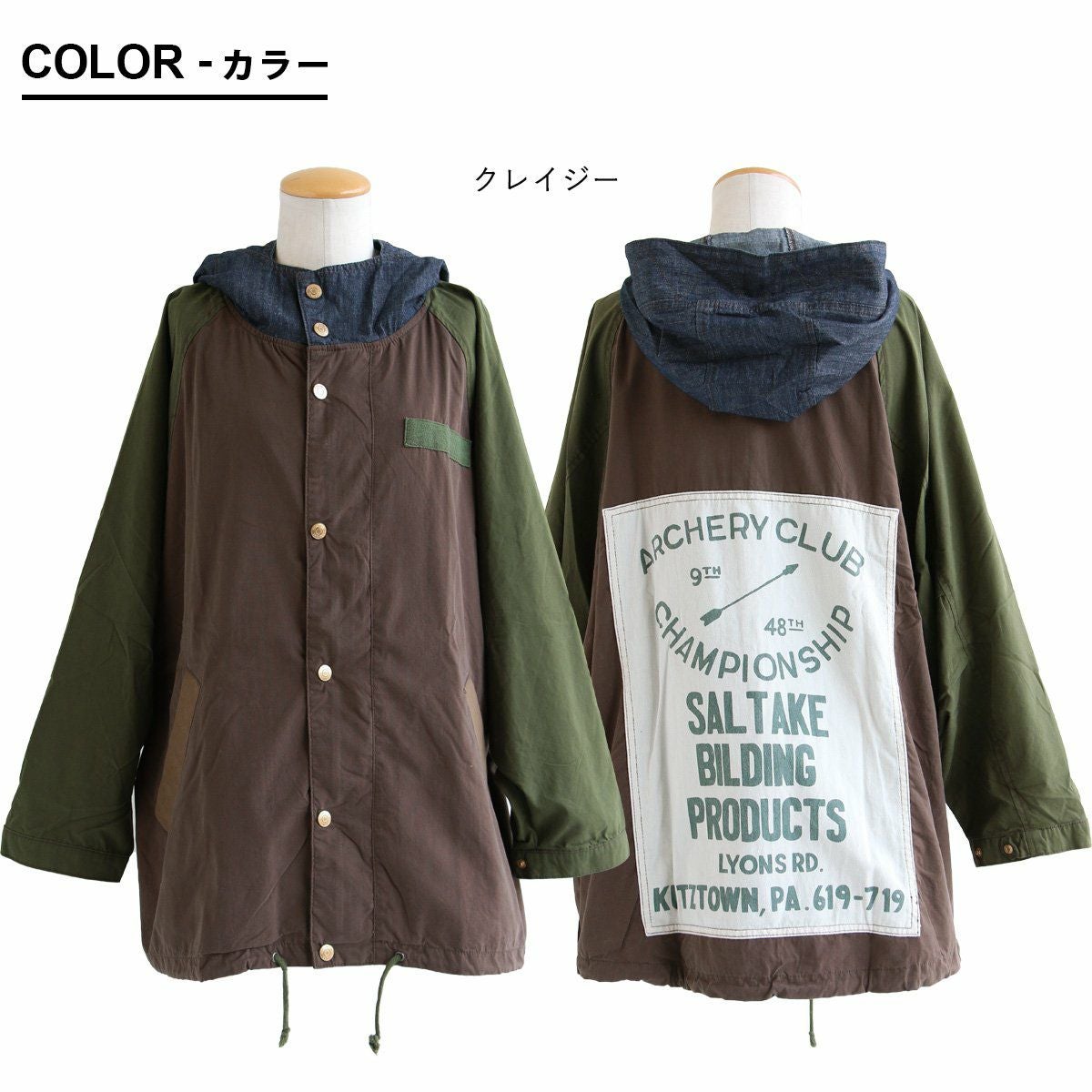 他の画像を見る 目を惹く色合い、サマになるカタチ、見せたい背中。 ジャケット フードジャケット レディース 長袖 ハイネック バックプリント 異素材切り替え クレイジー デニム 綿100 コットン 軽い ゆったり 大きいサイズ 体型カバー カジュアル メンズライク ミリタリー 秋 冬 パティ 2~3日でお届け 販売価格 ¥ 11,990 税込 在庫切れ カートに入れる お気に入りに登録する