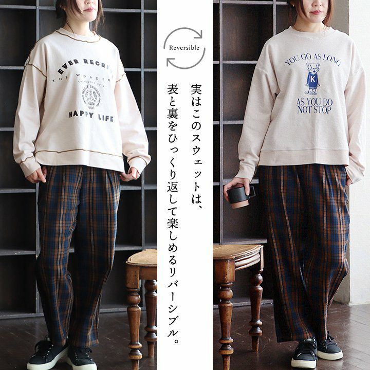 他の画像を見る お気に入りのスウェットを、両方で楽しめるだなんて。 スウェット 長袖 レディース クルーネック リバーシブル 綿100 コットン 起毛 プリント 配色 パイピング 伸縮性 ゆったり 大きいサイズ 体型カバー カジュアル 春 秋 冬 パティ KAKELA&TRANQUIL カケラ&トランクイル 2~3日でお届け 販売価格 ¥ 7,590 税込 在庫切れ カートに入れる お気に入りに登録する
