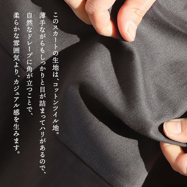 他の画像を見る ★★★★★「この感じ」なら、パンツ派のワタシも。 スカート ロング丈 ロングスカート ウエスト ストレッチ すごく伸びる ツイル スッキリ見え 立体裁断 ポケット 無地 レディース 軽量 薄手 マキシ マキシ丈 かっこいいスカート 大人 カジュアル パティ Souple スプル 2~3日でお届け 販売価格 ¥ 5,390 税込 在庫切れ 詳細を見る お気に入りに登録する