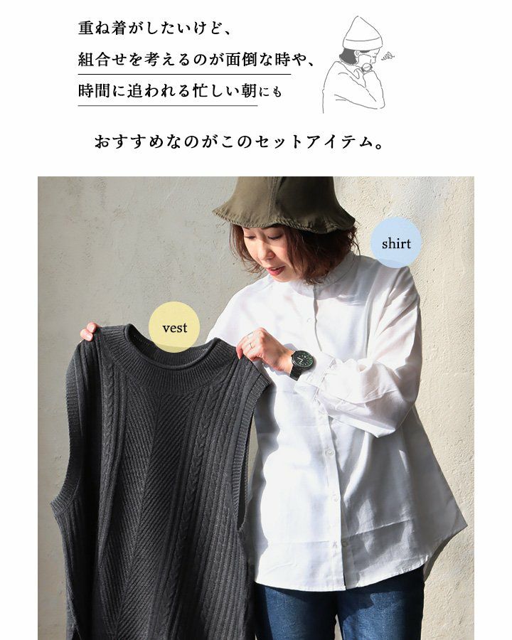 他の画像を見る 組合せを考えなくていいって、めちゃくちゃラクチン! シャツ 長袖 ニット ニットベスト アンサンブル セット 重ね着 レディース バンドカラー アクリル100 ニット コットン ポリエステル 起毛 伸縮性 ゆったり 大きいサイズ 体型カバー カジュアル パティ 2~3日でお届け 販売価格 ¥ 4,290 税込 在庫切れ カートに入れる お気に入りに登録する