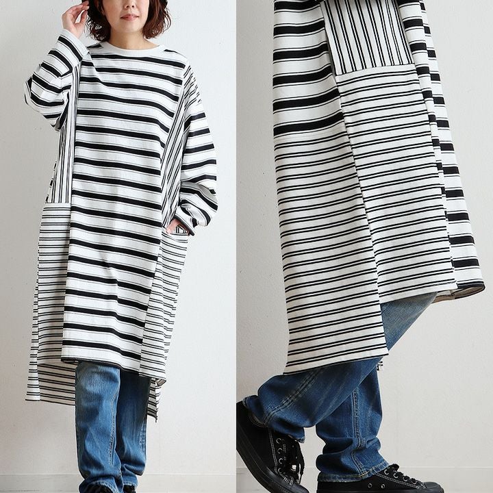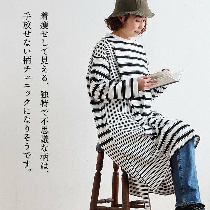 他の画像を見る 着痩せして見える、独特で不思議な柄。 チュニック 長袖 レディース クルーネック 綿100 コットン 天竺 ボーダー 伸縮性 通気性 ロング丈 お尻隠れる 体型カバー 着痩せ すっきり カジュアル パティ 2~3日でお届け 販売価格 ¥ 6,490 税込 在庫切れ カートに入れる お気に入りに登録する