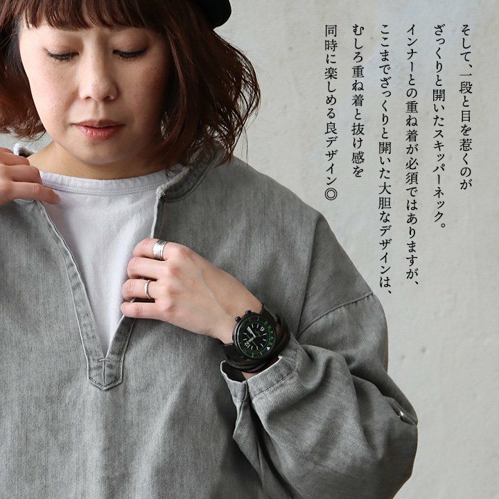 他の画像を見る 軽やかに纏う、女性らしい「抜け感」。 Antgauge アントゲージ チュニック レディース スキッパーネック デニム カットオフ リメイク 褪せ色 グレー コットン ポリエステル 軽い 袖ボタン ゆったり 大きいサイズ 体型カバー カジュアル パティ 2~3日でお届け 販売価格 ¥ 17,600 税込 在庫切れ カートに入れる お気に入りに登録する
