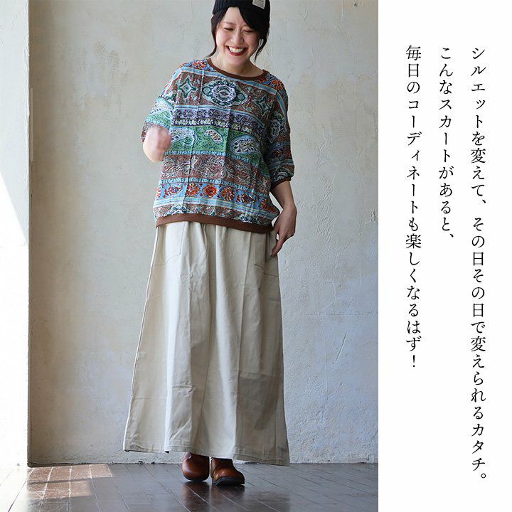 他の画像を見る その日、その日で楽しめる違ったカタチ。 スカート ギャザースカート ベイカー レディース 2WAY 綿100 コットン ツイル 無地 しっかり生地 ウエストゴム ゆったり 大きいサイズ 体型カバー カジュアル パティ 2~3日でお届け 販売価格 ¥ 5,390 税込 在庫切れ 詳細を見る お気に入りに登録する