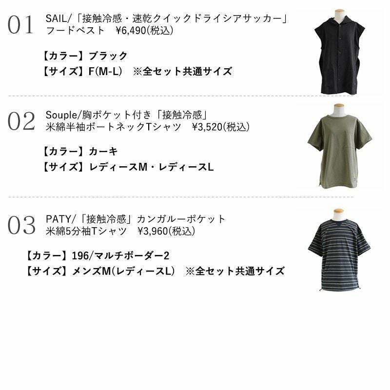 他の画像を見る 見た目は「きちんと」。だけどバッチリ「涼しい」! コーディネートセット コーデセット 夏 セットアップ 夏 コーディネートセット 福袋 セットアップ メンズ レディース ユニセックス カジュアル お試し M L XL LL 2L パティ 販売価格 ¥ 8,999 税込 在庫切れ カートに入れる お気に入りに登録する