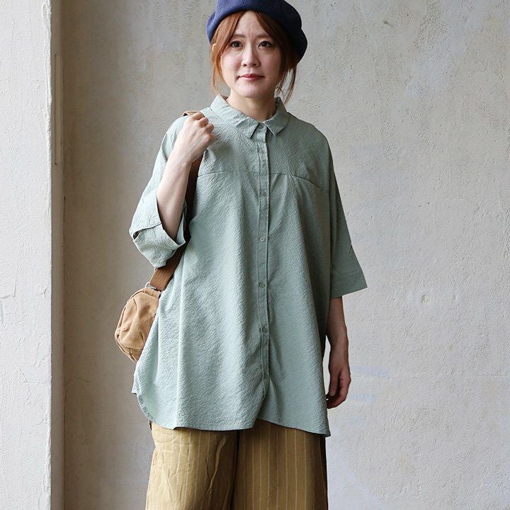 他の画像を見る 真夏を乗り切る「スルッと、サラッと」サマになる佇まい。 シャツ 5分袖 メンズ レディース レギュラーカラー ポリエステル シアサッカー 涼しい 軽い 薄手 通気性 ゆったり 大きいサイズ 体型カバー カジュアル 夏 パティ ROUGH TRADE 2~3日でお届け 販売価格 ¥ 5,390 税込 在庫切れ カートに入れる お気に入りに登録する