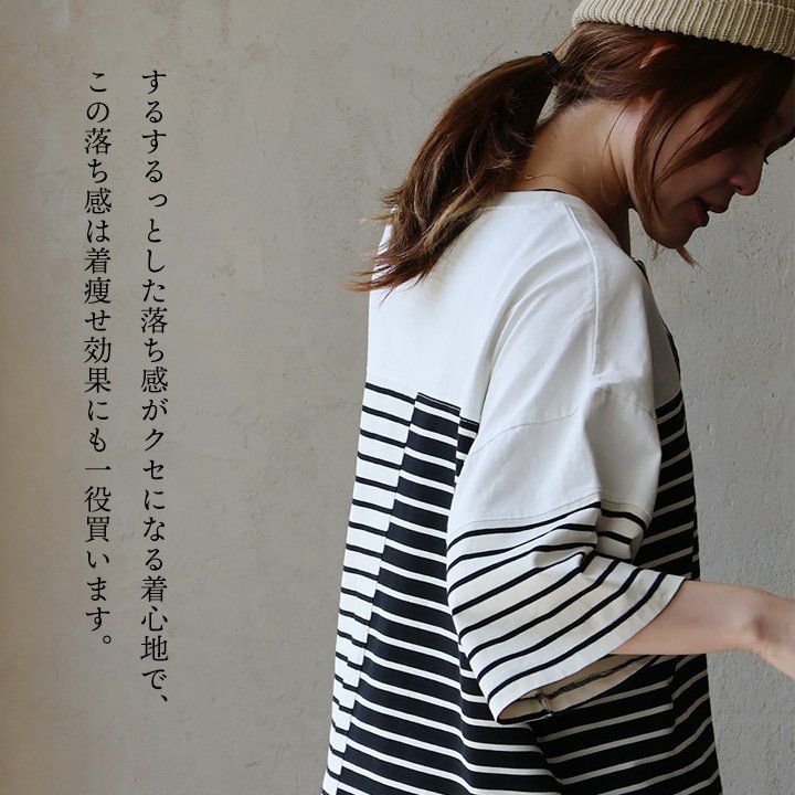 他の画像を見る 安心して手に取れる「無地×ボーダー」。 Tシャツ 7分袖 レディース クルーネック 綿100 コットン 天竺 無地 ボーダー 配色切り替え お尻隠れる 大きいサイズ 体型カバー 着痩せ すっきり カジュアル 夏 パティ 2~3日でお届け 販売価格 ¥ 5,390 税込 在庫切れ カートに入れる お気に入りに登録する