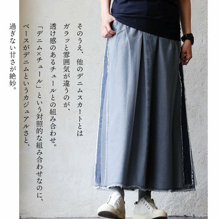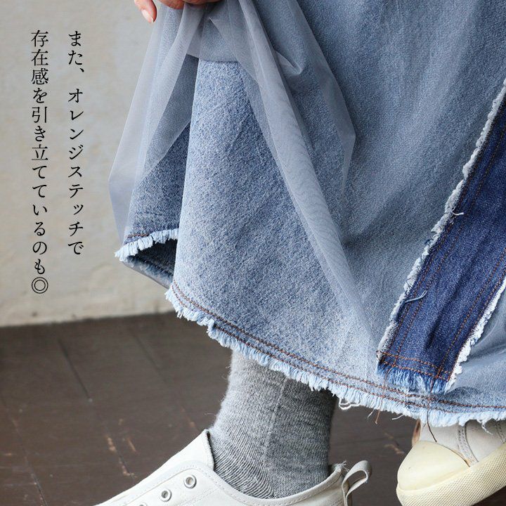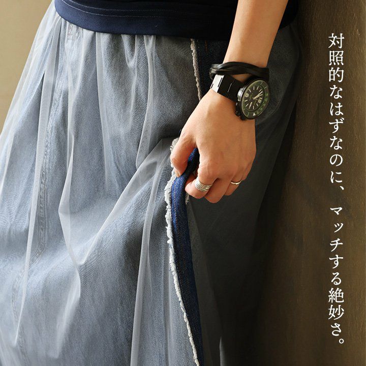 他の画像を見る 対象的なはずなのに、マッチする絶妙さ。 スカート フレア ロング レディース デニム ノンストレッチ カットオフ リメイク風 チュール 綿100 コットン ポリエステル 軽い ウエストゴム ゆったり 大きいサイズ 体型カバー カジュアル 夏 パティ 2~3日でお届け 販売価格 ¥ 9,790 税込 在庫切れ 詳細を見る お気に入りに登録する