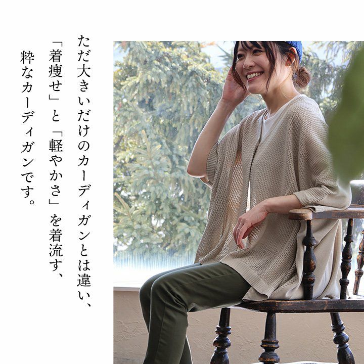 他の画像を見る 「着痩せ」と「軽やかさ」を着流す、粋なカーディガン。 カーディガン 7分袖 レディース 7分袖 Vネック レーヨン ナイロン 薄手 シアー 軽い 涼しい 伸縮性 ドルマン ゆったり 大きいサイズ 体型カバー カジュアル 春 夏 パティ 2~3日でお届け 販売価格 ¥ 4,290 税込 在庫切れ カートに入れる お気に入りに登録する