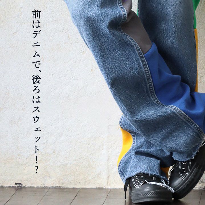 他の画像を見る 前はデニムで、後ろはスウェット!? パンツ イージー ワイド ストレート メンズ レディース デニム スウェット 異素材切り替え ウエストゴム ゆったり 体型カバー 大きいサイズ カジュアル アメカジ ヴィンテージ リメイク パティ 2~3日でお届け 販売価格 ¥ 14,080 税込 在庫切れ 詳細を見る お気に入りに登録する