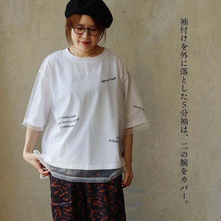 他の画像を見る 「いつも」に、透け感とアソビをプラス。 【メール便50】 Tシャツ 5分袖 レディース クルーネック シアー レイヤード 重ね着 ロゴ プリント 刺繍 コットン ポリエステル 薄手 通気性 軽い ゆったり 大きいサイズ 体型カバー カジュアル 夏 パティ 販売価格 ¥ 4,290 税込 在庫切れ カートに入れる お気に入りに登録する