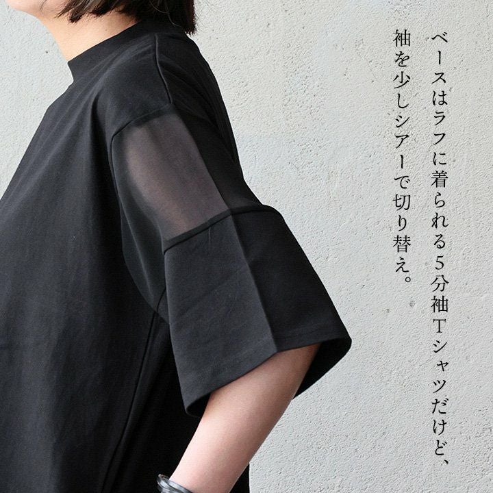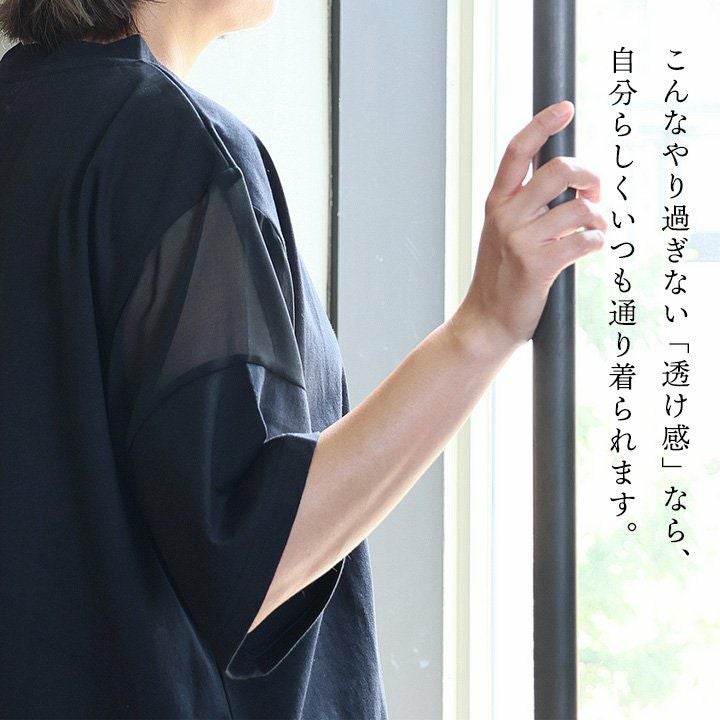 他の画像を見る いつも通り着られる、私好みな涼し気「シアー」。 【メール便50】 Tシャツ 5分袖 レディース クルーネック 透け感 シアー 切り替え 綿100 コットン 薄手 通気性 涼しい 軽い 大きいサイズ 体型カバー 二の腕 すっきり カジュアル 夏 パティ 2~3日でお届け 販売価格 ¥ 4,290 税込 在庫切れ カートに入れる お気に入りに登録する