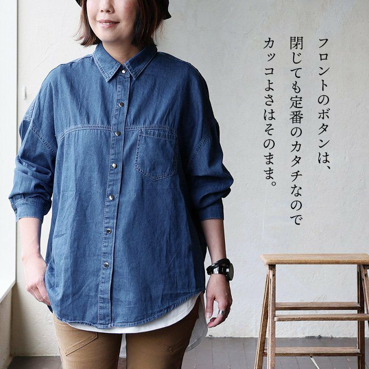 他の画像を見る 着慣れたデニムも「チラ見せ」であそぶだけ。 【訳あり】シャツ 長袖 デニムシャツ レディース バックボタン 重ね着 コットン ポリエステル シャンブレー 薄手 紫外線 冷房対策 羽織り 体型カバー 着痩せ すっきり カジュアル 夏 パティ GENTIL ジャンティ 2~3日でお届け 販売価格 ¥ 4,554 税込 在庫切れ カートに入れる お気に入りに登録する
