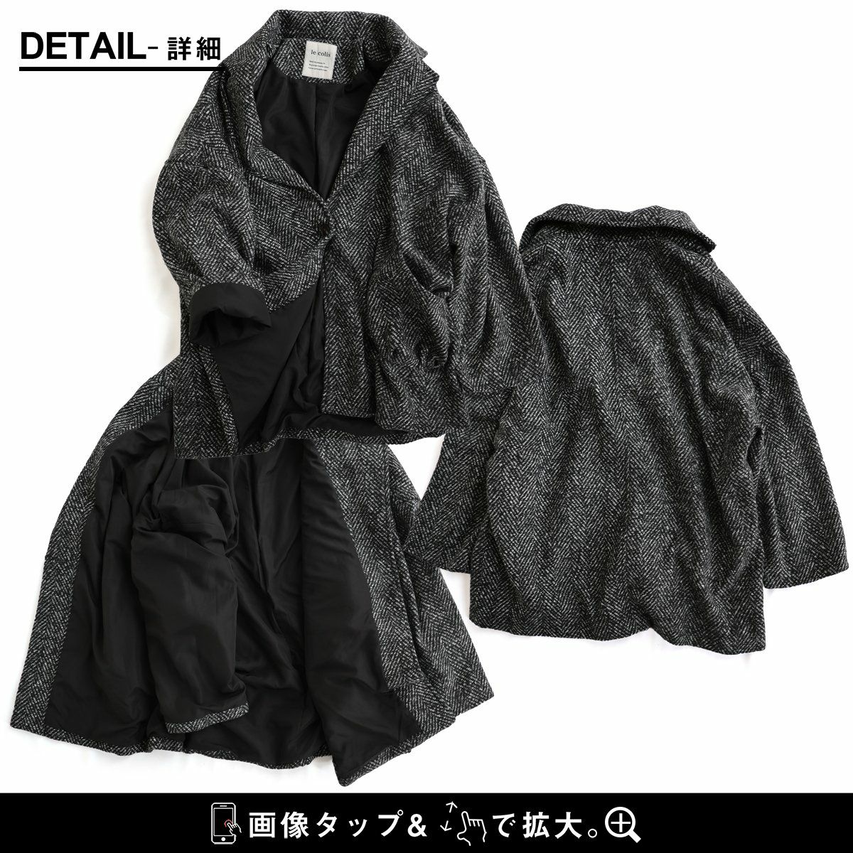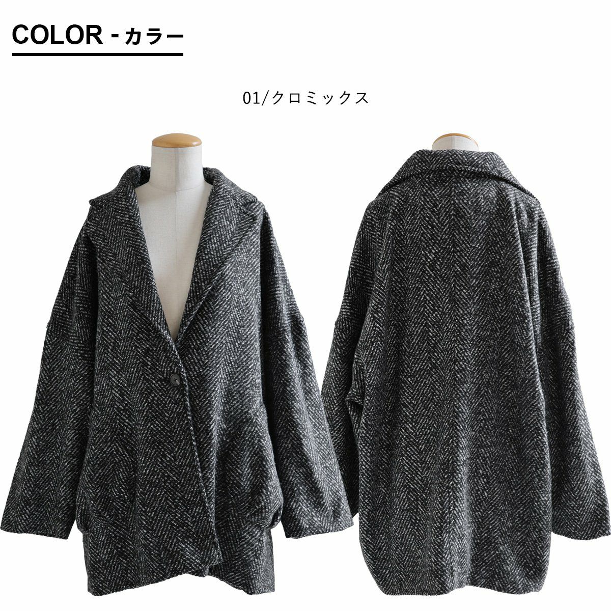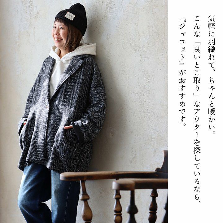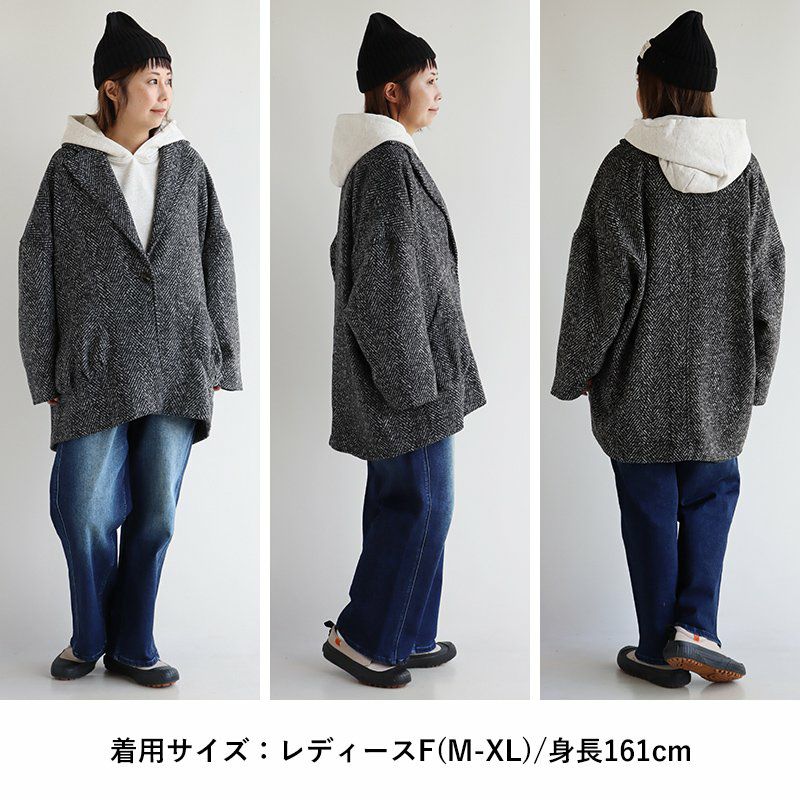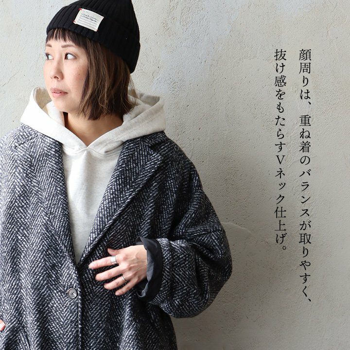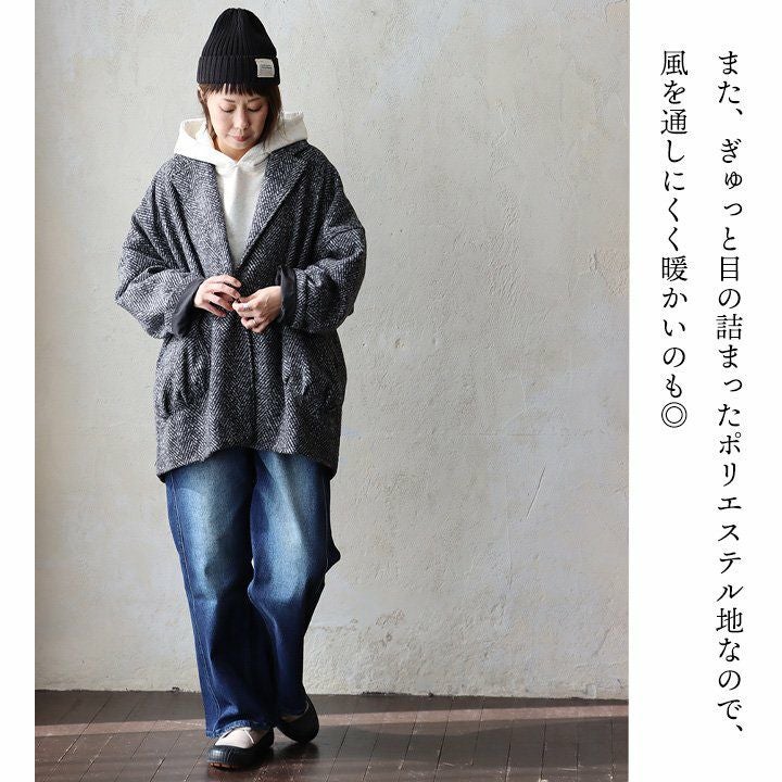 他の画像を見る ジャケットとコートの「良いとこ取り」アウター。 ジャコット ジャケット コート レディース 長袖 Vネック へリンボーン ウールライク モノクロ ポリエステル 裏地付き ダブルフェイス 軽い ゆったり 暖かい 大きいサイズ 体型カバー カジュアル 秋 冬 パティ le colis ルコリ 2~3日でお届け 販売価格 ¥ 8,690 税込 在庫切れ カートに入れる お気に入りに登録する