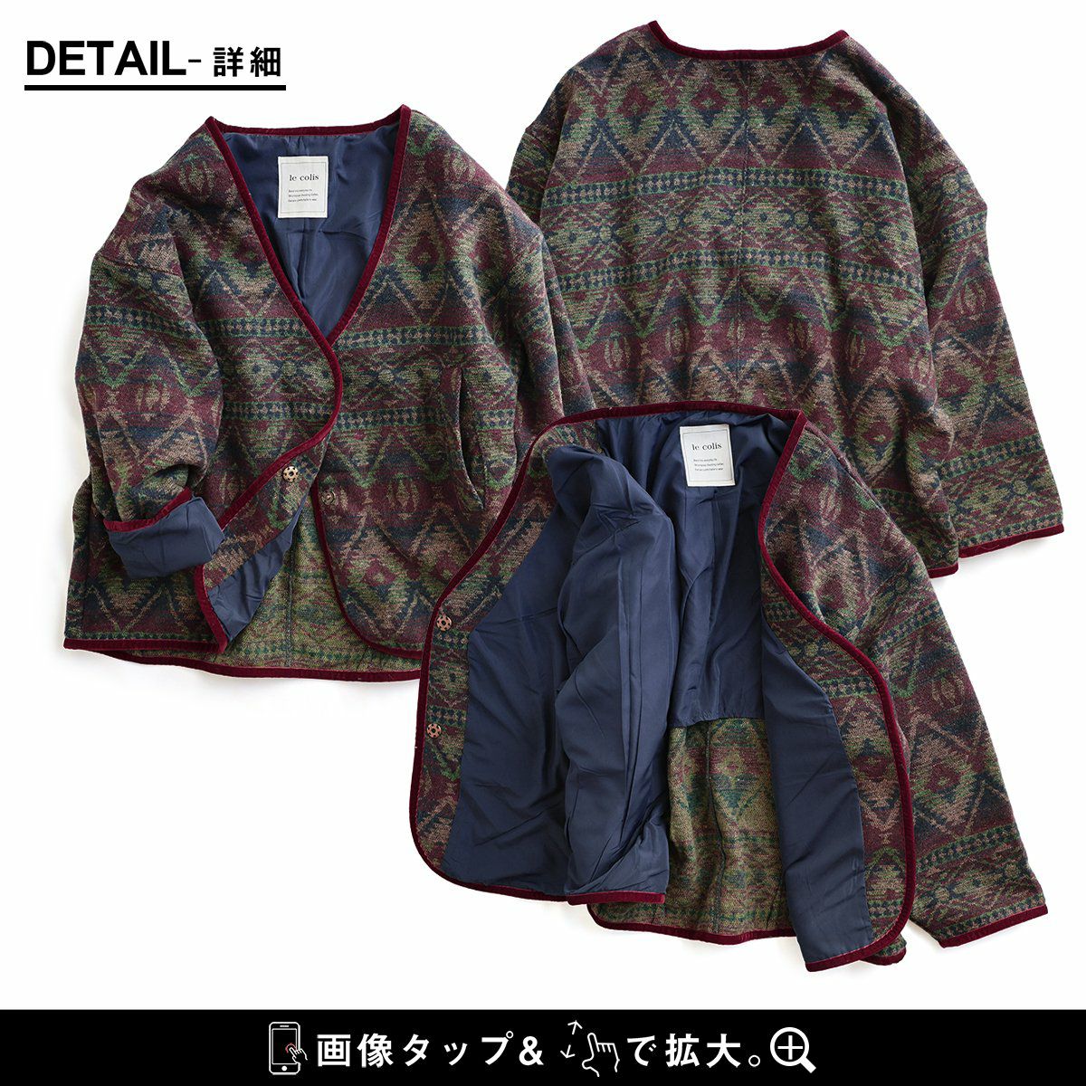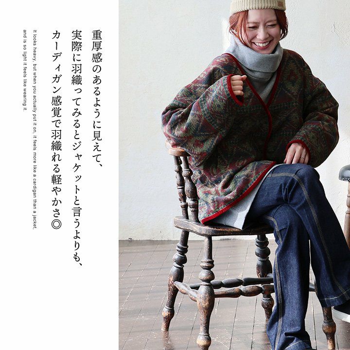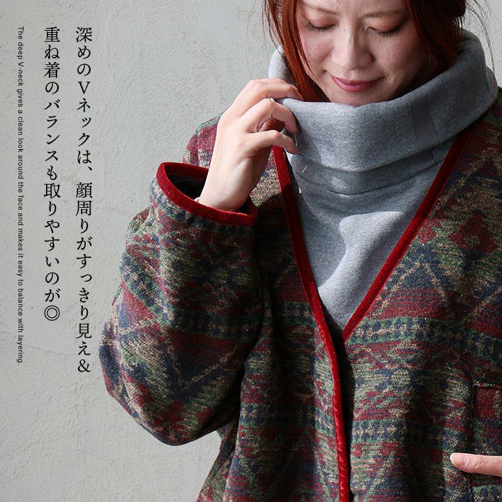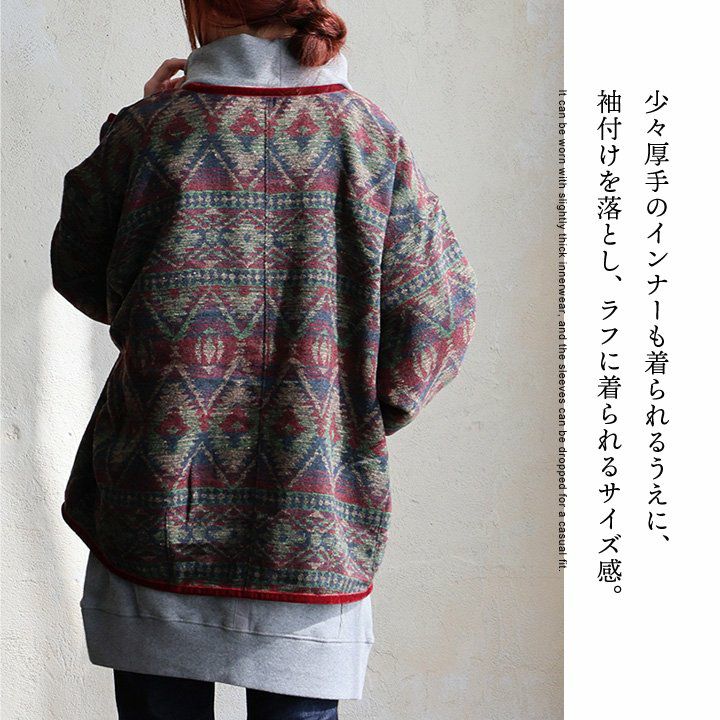 他の画像を見る ヴィンテージな雰囲気と、カーディガン感覚で。 ジャケット 長袖 Vネック オルテガ柄 配色 ジャガード ポリエステル 総柄 軽い 重ね着 ゆったり 大きいサイズ カジュアル 秋 冬 パティ le colis ルコリ 2~3日でお届け 販売価格 ¥ 7,590 税込 在庫切れ カートに入れる お気に入りに登録する