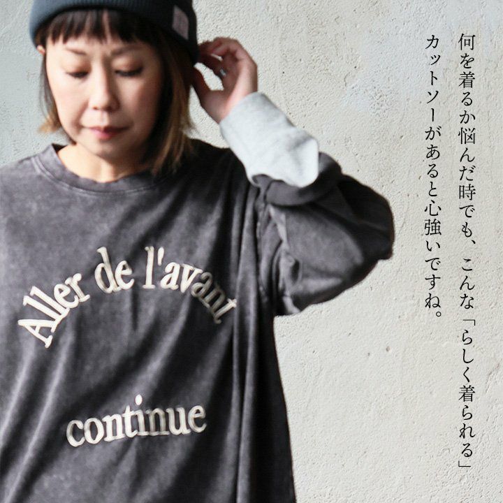 他の画像を見る この見た目で、軽やかに着られるギャップ。 カットソー 長袖 レディース クルーネック ロゴプリント 綿100 コットン 天竺 ピグメント 褪せ色 大きいサイズ 体型カバー ゆったり カジュアル 春 秋 冬 パティ KAKELA&TRANQUIL カケラ&トランクイル 販売価格 ¥ 6,490 税込 在庫切れ カートに入れる お気に入りに登録する