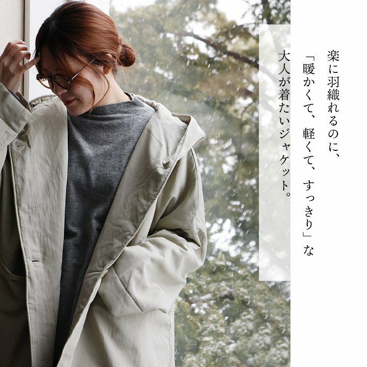 他の画像を見る 楽に羽織れるのに、「暖かくて、軽くて、すっきり」な大人が着たいジャケット。 ジャケット フード付き ミディ丈 レディース 無地 ナイロン レーヨン ツイル 中綿 キルト 裏地付き 暖かい 軽い ゆったり 体型カバー 大きいサイズ カジュアル オフィスカジュアル 秋 冬 パティ corail コライユ 2~3日でお届け 販売価格 ¥ 23,980 税込 在庫切れ カートに入れる お気に入りに登録する
