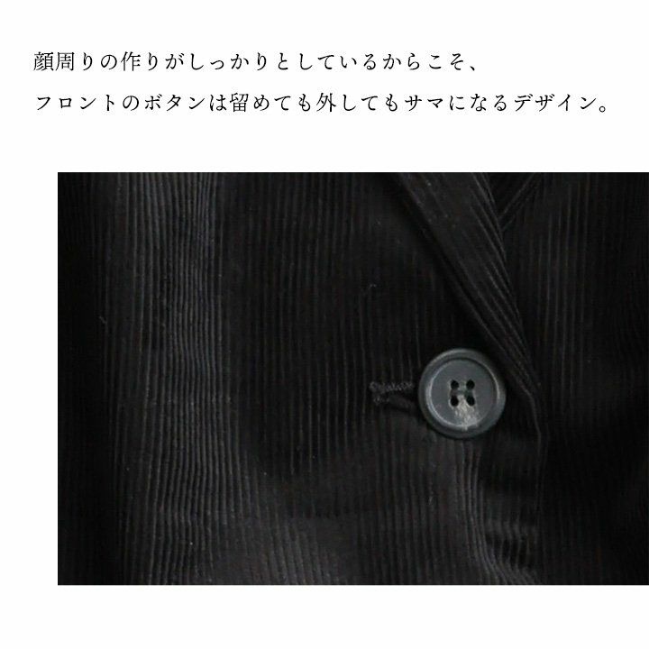 他の画像を見る オフィスにも街にも馴染む、細畝コーデュロイ。 ジャケット テーラードジャケット レディース 綿100 コットン コーデュロイ 細畝 大きいサイズ カジュアル オフィスカジュアル 秋 冬 春 パティ 2~3日でお届け 販売価格 ¥ 14,080 税込 在庫切れ カートに入れる お気に入りに登録する