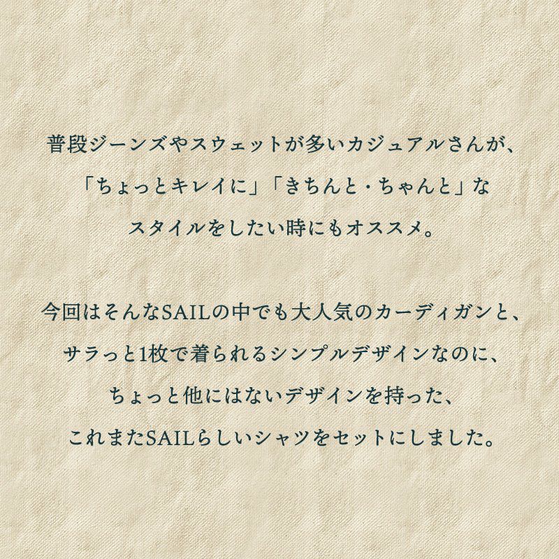 他の画像を見る SAIL(帆) ― どんな強いアイテム(風)も推進力に変える。 コーディネートセット コーデセット 秋 セットアップ 秋 コーディネートセット 福袋 セットアップ レディース ユニセックス カジュアル お試し フリー メンズ パティ SAIL セイル 販売価格 ¥ 16,999 税込 在庫切れ カートに入れる お気に入りに登録する