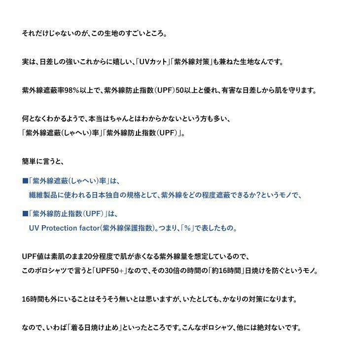 他の画像を見る 「着る、日焼け止め」。しかも、「涼しく、ドライ」。 (アリステア) ALISTAIR ポロシャツ 「吸水 速乾 ドライ シルキータッチ」 紫外線防止 UPF50+ 刺繍入り 販売価格 ¥ 4,290 税込 在庫切れ カートに入れる お気に入りに登録する