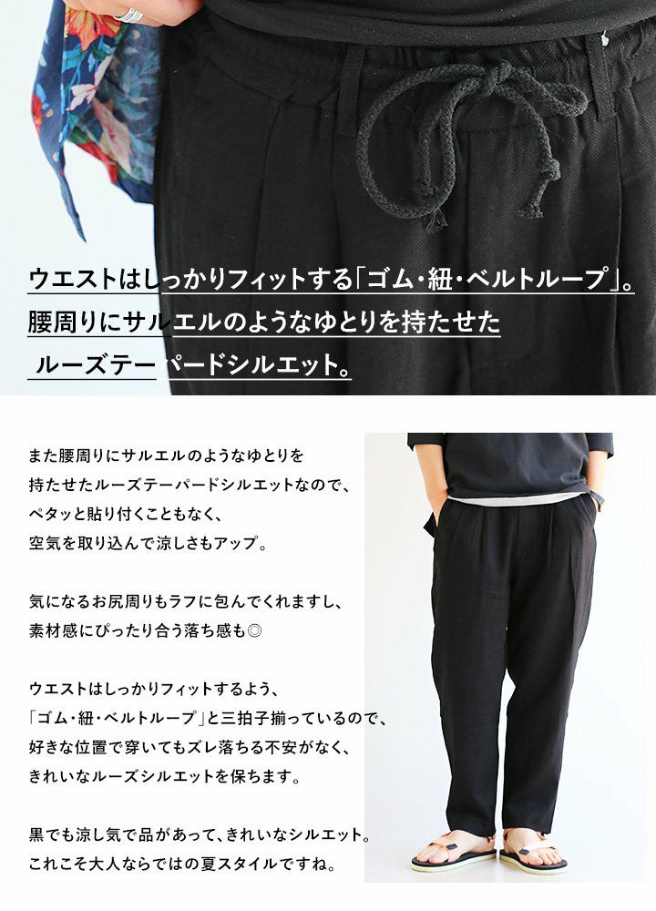 他の画像を見る 黒なのに、するっと軽くて涼しい。 (ミスターランバージャック) Mr.Lumberjack パンツ テーパード イージーパンツ ウエストゴム 紐 麻綿 販売価格 ¥ 7,590 税込 在庫切れ カートに入れる お気に入りに登録する