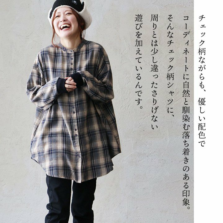 他の画像を見る ゆるりと着られるチェックシャツに、遊び心を。 チェックシャツ 長袖 レディース バンドカラー コットン ポリエステル フランネル 袖リブ 配色 ゆったり 体型カバー 着痩せ カジュアル 秋 冬 パティ 2~3日でお届け 販売価格 ¥ 6,490 税込 在庫切れ カートに入れる お気に入りに登録する