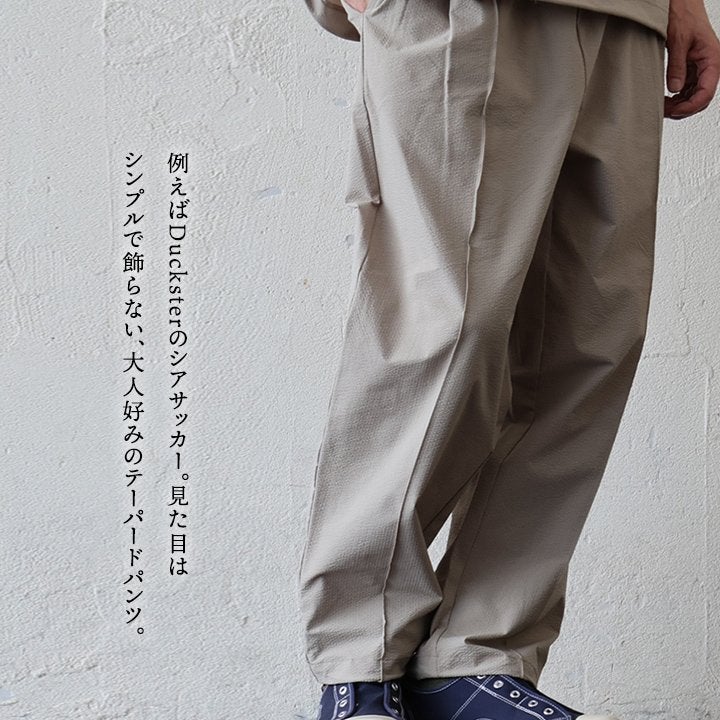 他の画像を見る 動ける。暑くなりにくい。ベタつかない。 Duckster ダックスター パンツ テーパード レディース メンズ シアサッカー ストレッチ 遮熱 速乾 裾 絞れる イージーパンツ ウエストゴム 紐 カジュアル シンプル 無地 夏 涼しい 軽い パティ 2~3日でお届け 販売価格 ¥ 6,490 税込 在庫切れ 詳細を見る お気に入りに登録する