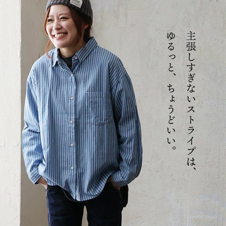 他の画像を見る 主張しすぎないストライプは、ゆるっと、ちょうどいい。 シャツ ストライプ柄シャツ 長袖 レディース 綿100 コットン 薄手 重ね着 ゆったり 大きいサイズ 体型カバー カジュアル 秋 冬 春 パティ GENTIL ジャンティ 2~3日でお届け 販売価格 ¥ 4,290 税込 在庫切れ カートに入れる お気に入りに登録する