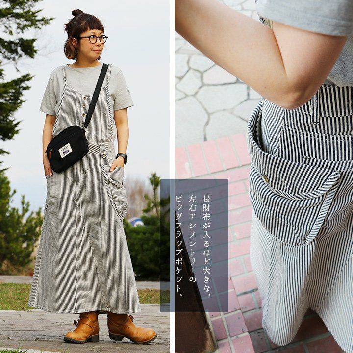 他の画像を見る 「しっかりマキシ丈」サロペットに、渋色ヒッコリー登場。 (ブルート) BLUETO サロペット スカート マキシ丈 ヒッコリー デニム ノンストレッチ ビッグポケット 販売価格 ¥ 12,100 税込 在庫切れ 詳細を見る お気に入りに登録する